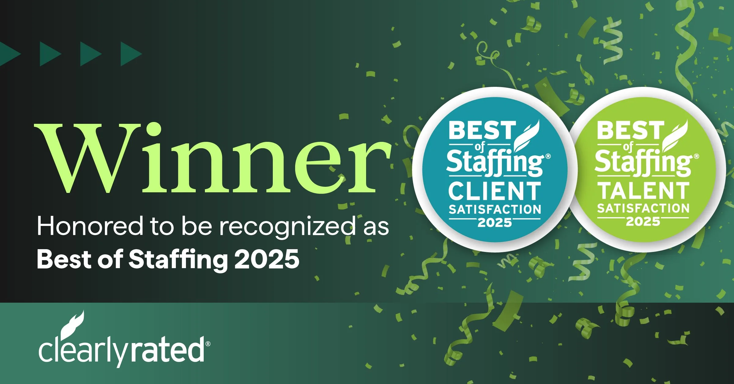 ClearlyRated's Best of Staffing® Award is the only award in the U.S. and Canada that recognizes staffing agencies that have proven superior service quality based entirely on ratings provided by their clients, placed talent, and internal employees. Award winners are showcased by city and area of expertise on ClearlyRated.com—an online business directory that helps buyers of professional services find service leaders and vet prospective firms with the help of validated client ratings and testimonials.