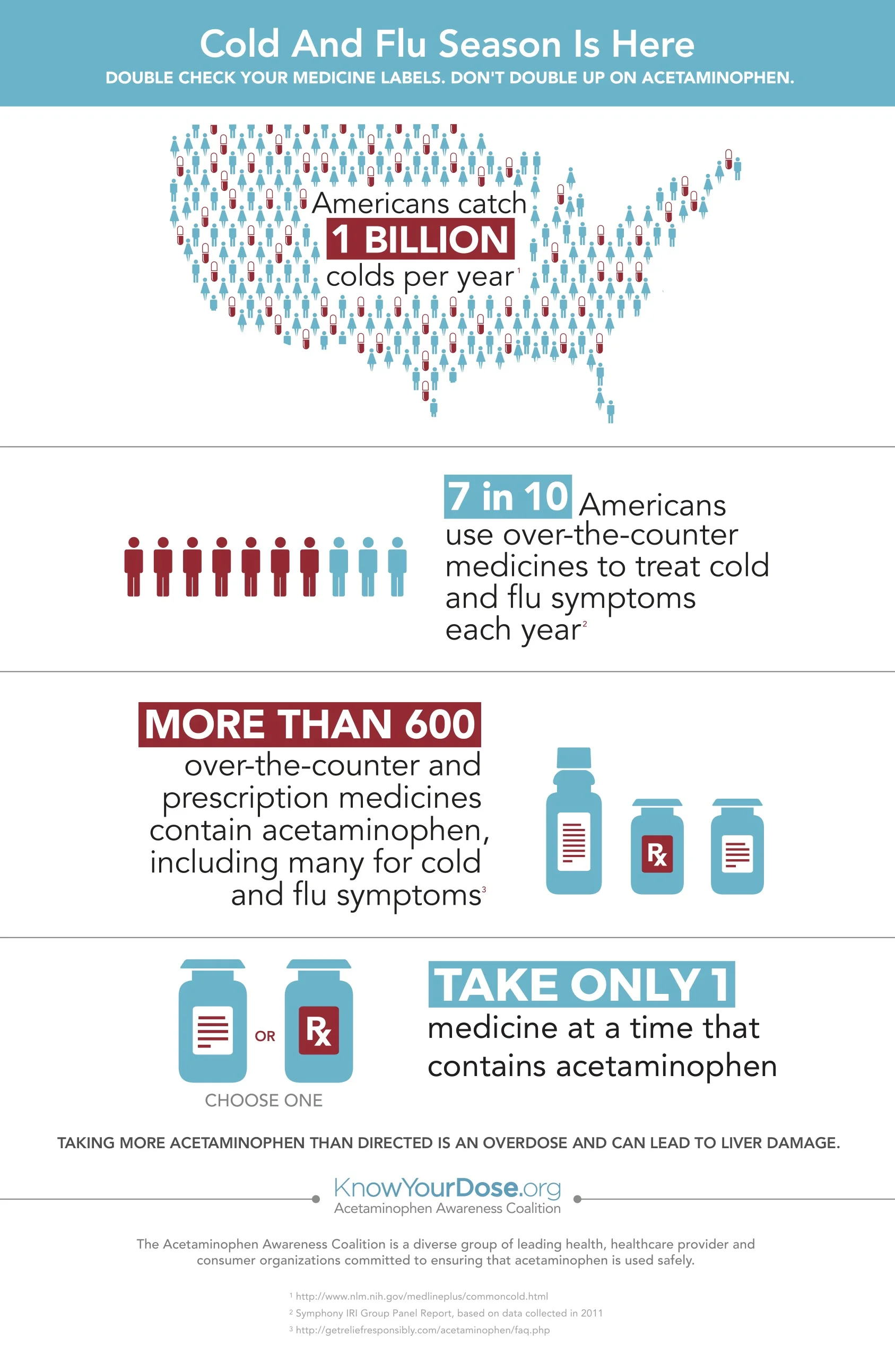 Cold and Flu Season is Here Health and Wellness Jan 1 Written By Double check your medicine labels. Don’t double up on Acetaminophen. View fullsize acetaminophenmedicine labels